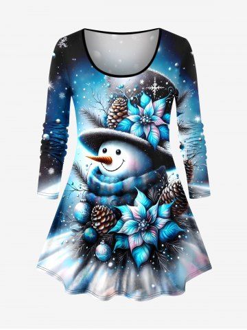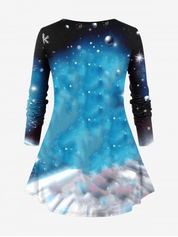 Plus Size Christmas Ball Snowflake Snowman Tie Dye Ombre Print Long Sleeves Women T-shirt - Sky Blue - 6x