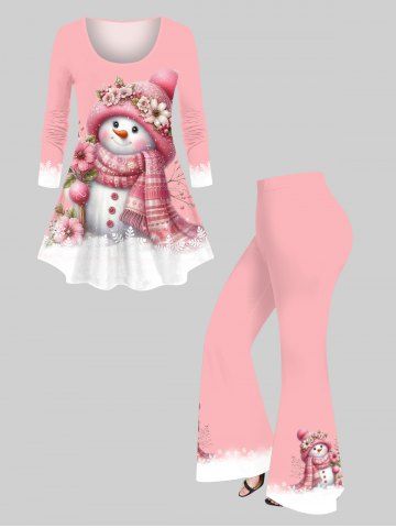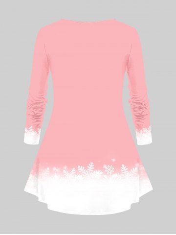 Plus Size Christmas Ball Snowman Flowers Snowflake Colorblock Print T-shirt - Light Pink - 3x