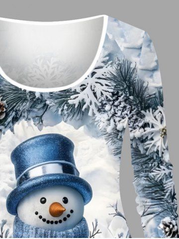 Plus Size Christmas Ball Snowman Snowflake Print Long Sleeves T-shirt - Light Blue - 6x