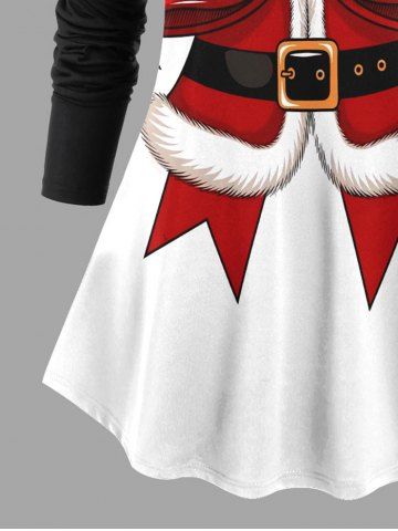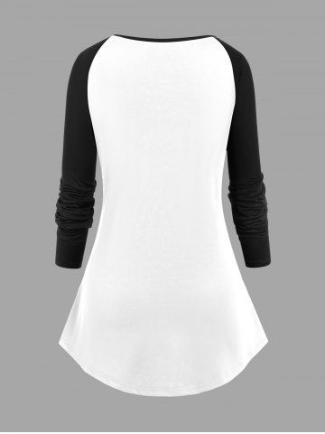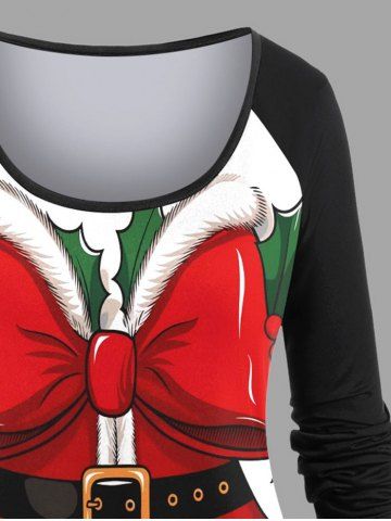 Plus Size Christmas Bowknot Holly Print Long Sleeves Women T-shirt - Black - L