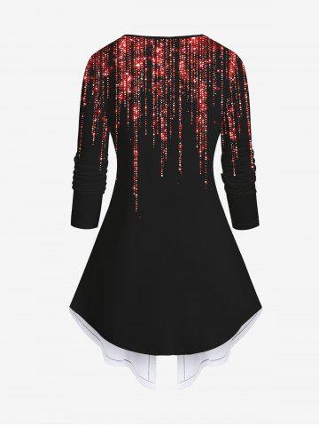 Tops > Plus Size Christmas Candy Bowknot Sparkling Sequin Tassel Glitter 3D Print 2 In 1 T-shirt