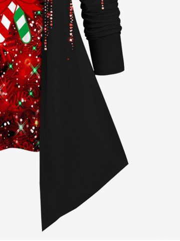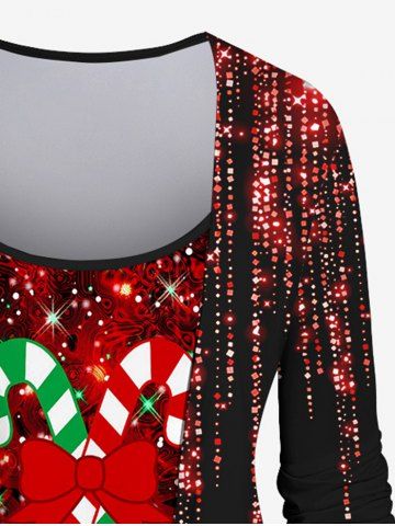Plus Size Christmas Candy Bowknot Sparkling Sequin Tassel Glitter 3D Print 2 In 1 T-shirt - Black - 6x