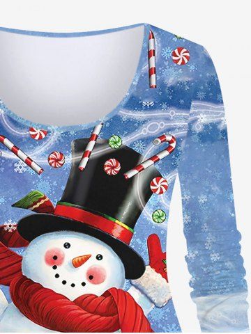 Plus Size Christmas Candy Snowman Snowflake Print T-shirt - Light Blue - S