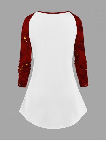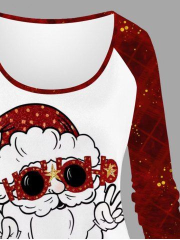 Plus Size Christmas Cute Santa Claus Print Ombre Plaid Raglan Sleeves T-shirt - Red - 2x