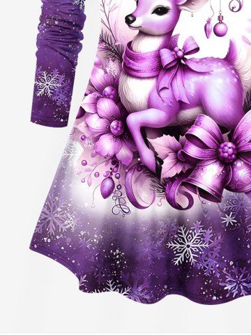 Plus Size Christmas Elk Snowflake Bell Bowknot Floral Print Ombre Long Sleeves T-shirt - Purple - 2x