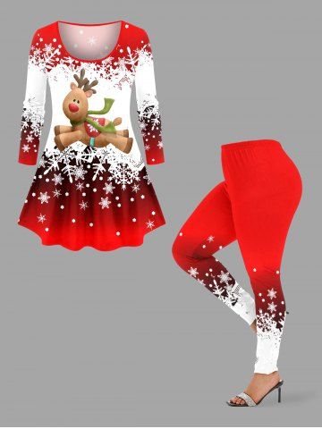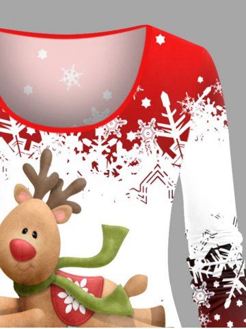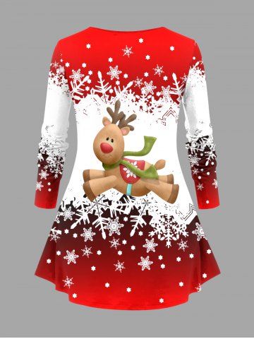 Plus Size Christmas Elk Snowflake Ombre Colorblock Print Long Sleeves T-shirt - Red - 1x