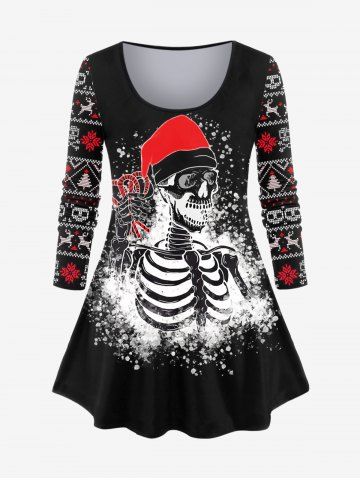Plus Size Christmas Elk Snowflake Skeleton Printed Long Sleeves Tee - Black - 3x | Us 22-24