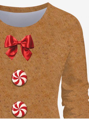 Plus Size Christmas Gingerbread Candy Heart Bowknot Print Sweatshirt - Light Brown - M