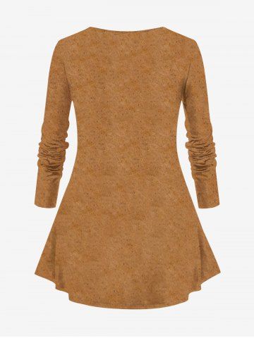 Plus Size Christmas Gingerbread Holly Fruit Leaf Print Long Sleeves T-shirt - Light Brown - L