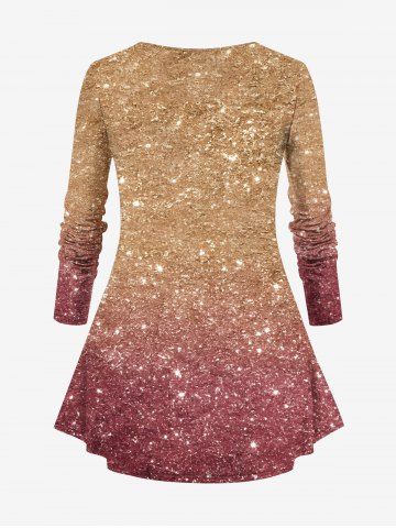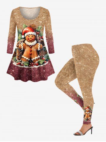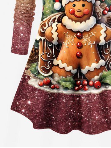 Plus Size Christmas Gingerbread Holy Fruit Leaf Sparkling Sequin 3D Print T-shirt - Multi-a - 1x