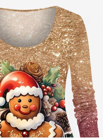 Tops > Plus Size Christmas Gingerbread Holy Fruit Leaf Sparkling Sequin 3D Print T-shirt