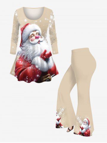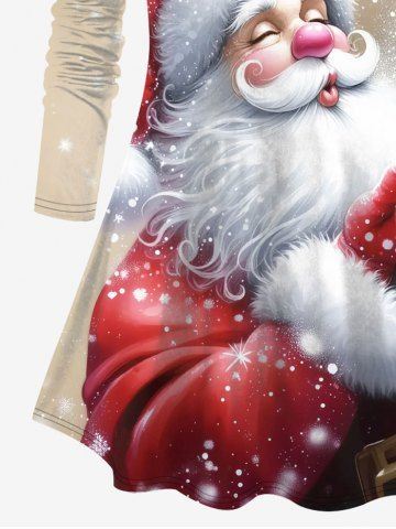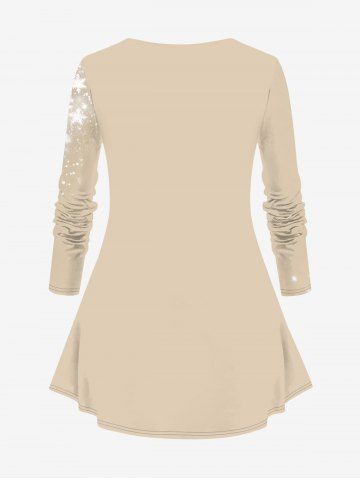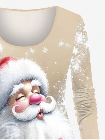 Plus Size Christmas Glitter Snowflake Santa Claus Print Long Sleeves T-shirt - Beige - L
