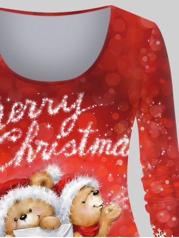 Plus Size Christmas Hat Bear Gift Snowflake Colorblock Print T-shirt - Red - 5x