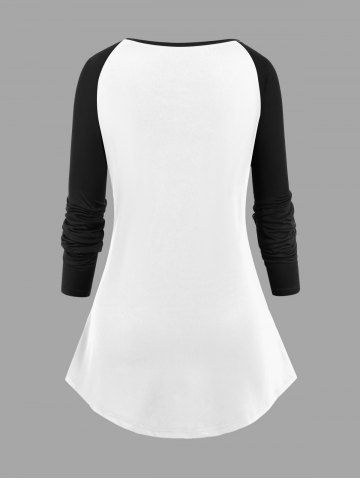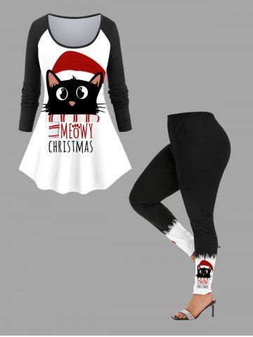 Plus Size Christmas Hat Cat Letters Print Long Sleeves T-shirt - Black - M
