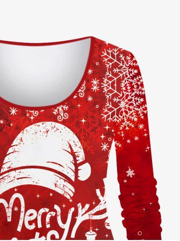 Plus Size Christmas Hat Elk Horn Snowflake Letters Print Long Sleeve T-shirt - Deep Red - Xs