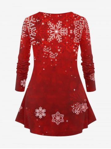 Plus Size Christmas Hat Elk Horn Snowflake Letters Print Long Sleeve T-shirt - Deep Red - S