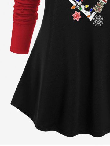 Plus Size Christmas Hat Light Snowflake Heart Print Raglan Sleeves T-shirt - Black - 1x