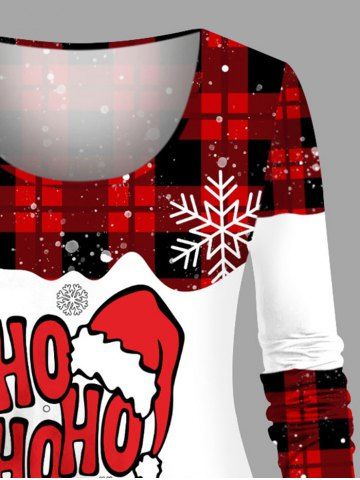 Plus Size Christmas Hat Plaid Snowflake Print Long Sleeves T-shirt - Red - 2x