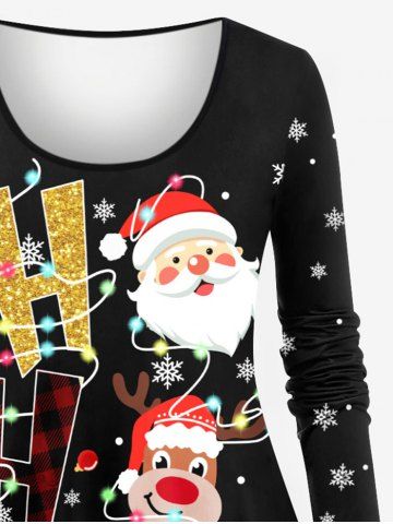 Plus Size Christmas Hat Santa Claus Elk Snowman Snowflake Print T-shirt - Black - L