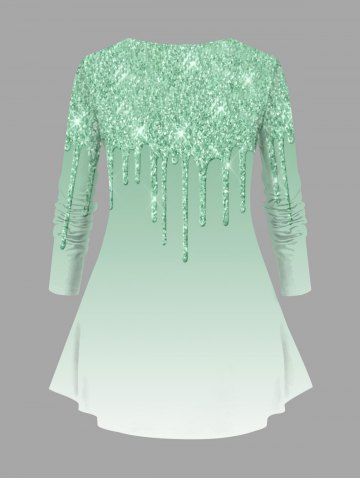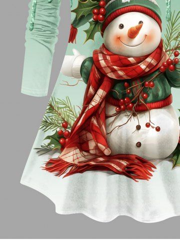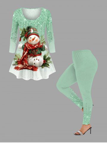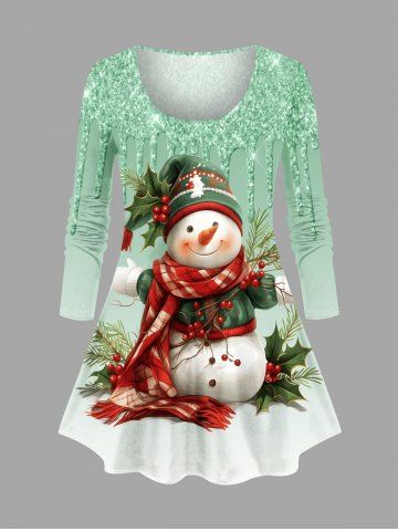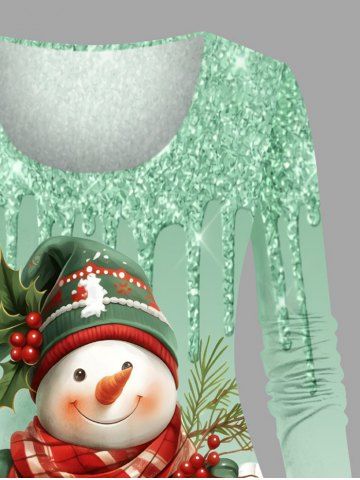 Plus Size Christmas Hat Scarf Snowman Holy Fruit Paint Drop Sparkling Sequin 3D Print T-shirt - Light Green - 1x