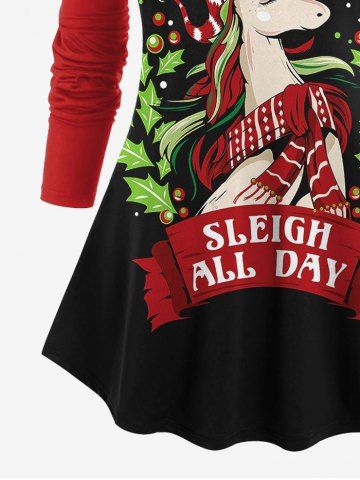 Plus Size Christmas Holly Leaves Unicorn Stars Letters Print Long Sleeves T-shirt - Red - 5x