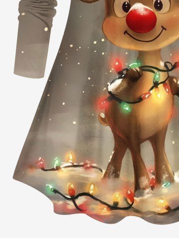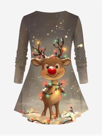 Plus Size Christmas Light Elk Snowflake Print Long Sleeves T-shirt - Tan - Xs