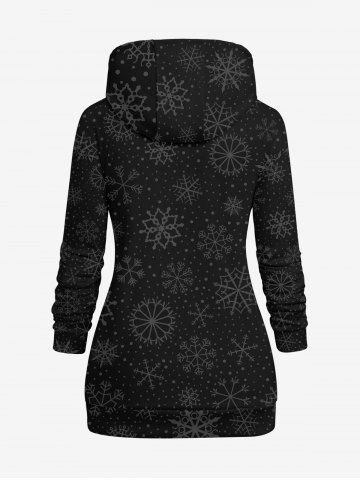 Plus Size Christmas Light Hat Owl Snowflake Print Drawstring Hoodie - Black - 3xl
