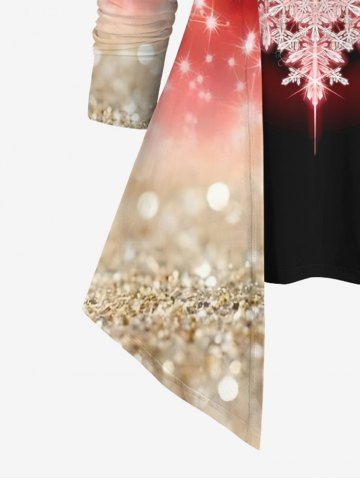 Tops > Plus Size Christmas Metallic Snowflake Star Sparkling Sequin Glitter 3D Print 2 In 1 T-shirt