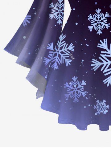 Tops > Plus Size Christmas Ombre Snowflake Print Lattice Crisscross Flare Sleeve T-shirt