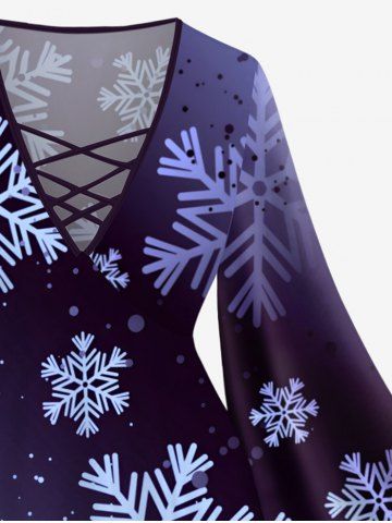 Plus Size Christmas Ombre Snowflake Print Lattice Crisscross Flare Sleeve T-shirt - Black - L