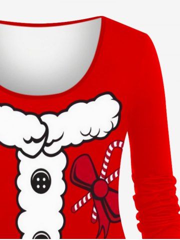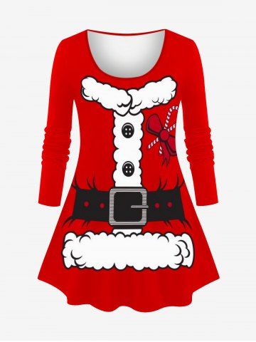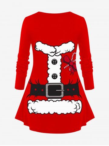 S*****n5Plus Size Christmas Santa Claus Belt Bowknot Candy Print T-shirtColor: RED Size: Lvery cute top, lots of compliments every time I wear it.