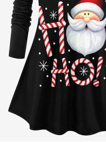 Plus Size Christmas Santa Claus Candy Bar Snowflake Print T-shirt - Black - 1x