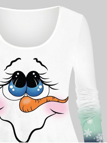 Plus Size Christmas Santa Claus Snowflake Ombre Colorblock Print T-shirt - White - Xs