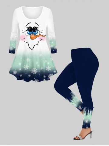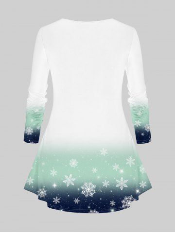 Plus Size Christmas Santa Claus Snowflake Ombre Colorblock Print T-shirt - White - 4x