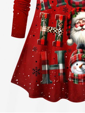 Plus Size Christmas Santa Claus Snowman Snowflake Elk Print Long Sleeves T-shirt - Red - 3x