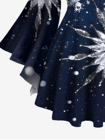 Plus Size Christmas Snowflake Galaxy 3D Print Lattice Ccrisscross Flare Sleeves T-shirt - Navy Blue - 1x