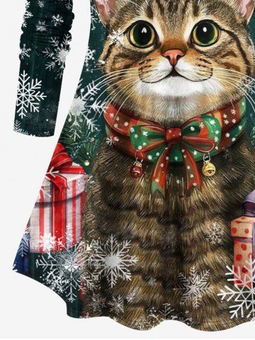 Tops > Plus Size Christmas Snowflake Gift Cat Elk Print Long Sleeves Women T-shirt
