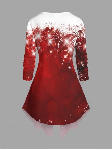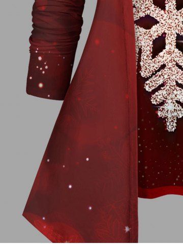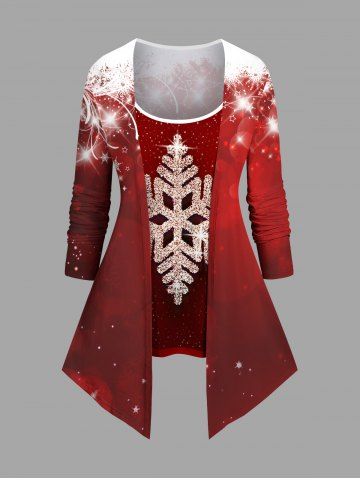 Plus Size Christmas Snowflake Glitter 3D Print 2 In 1 T-shirt - Red - Xs