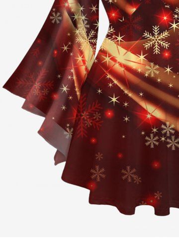 Tops > Plus Size Christmas Snowflake Light Beam Glitter 3D Print Lattice Crisscross Flare Sleeve T-shirt