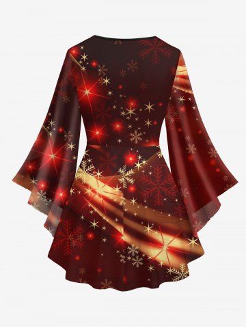 Tops > Plus Size Christmas Snowflake Light Beam Glitter 3D Print Lattice Crisscross Flare Sleeve T-shirt