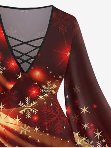 Plus Size Christmas Snowflake Light Beam Glitter 3D Print Lattice Crisscross Flare Sleeve T-shirt - Black - 6x