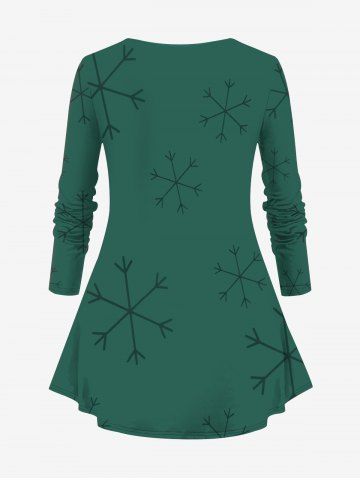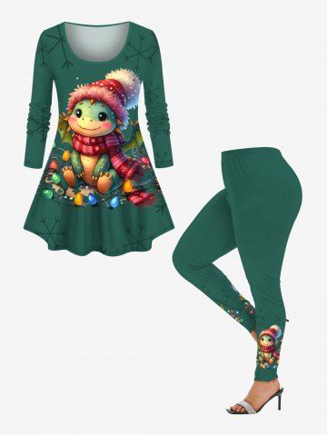 Plus Size Christmas Snowflake Light Cute Dinosaur Print Long Sleeves T-shirt - Green - 5x