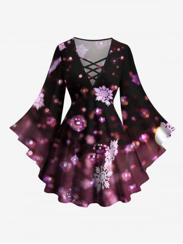 Plus Size Christmas Snowflake Ombre Bubble Print Lattice Long Sleeves T-shirt - Multi-a - M