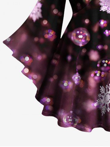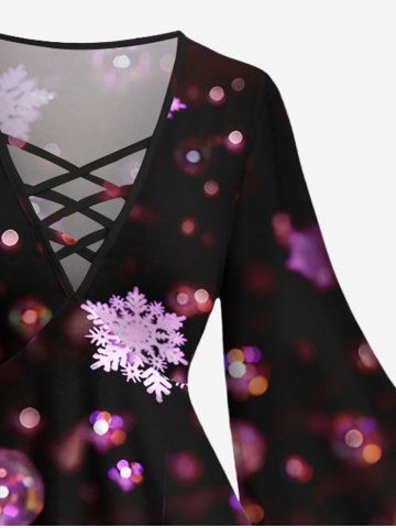 Plus Size Christmas Snowflake Ombre Bubble Print Lattice Long Sleeves T-shirt - Multi-a - 3x