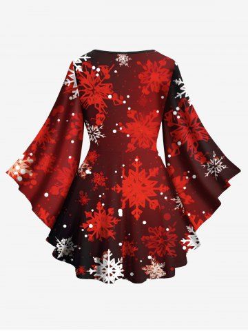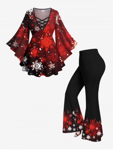 V*****a4Christmas Snowflake Print Ombre Lattice Long Sleeves T-shirt and Flare Pants Plus Size Matching SetColor: REDI got it!!!!