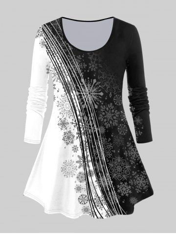 D*****s5Plus Size Christmas Snowflake Print Two Tone T-shirtColor: BLACK Size: L | US 12Love this shirt. Very comfortable, looks great with black jeans, and boots.