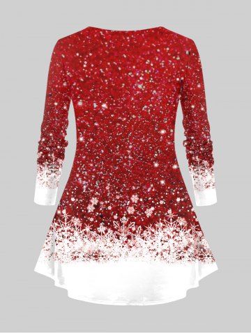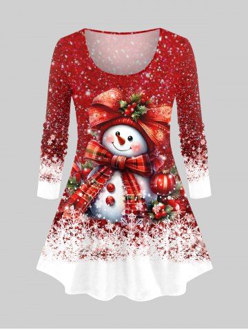 Plus Size Christmas Snowflake Snowman Bowknot Ball Holly Print Long Sleeves T-shirt - Red - 5x