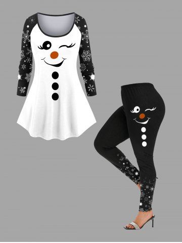 Plus Size Christmas Snowflake Snowman Print Raglan Sleeve T-shirt - White - 1x