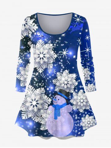 Plus Size Christmas Snowflake Snowman Print T-shirt - Blue - L | Us 12
