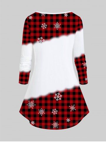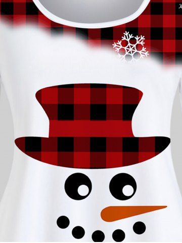 Plus Size Christmas Snowflake Snowman Printed Plaid Long Sleeves Tee - Red - 2x | Us 18-20